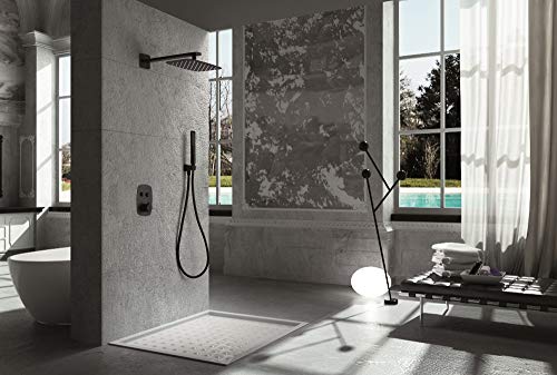 I corpi non vanno nello stesso blocco: da un lato abbiamo la piastra con il monocomando, l'inverter, dall'altro il supporto e il tubo doccia e infine il soffione doccia. Lo spruzzatore fuoriesce dalla parete in modo orizzontale ed è in acciaio inox ovale da 20 x 30 cm, ultrapiatto, cromato e anticalcare.