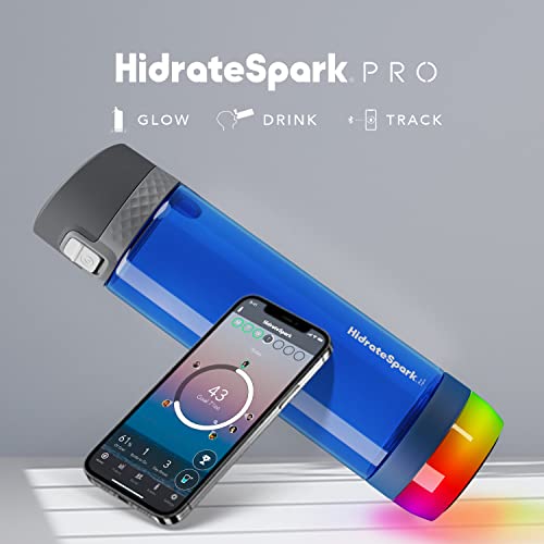 Hidrate Spark PRO Smart Borraccia in plastica Tritan, traccia l'assunzione di acqua e illumina per ricordarti di rimanere idratato, coperchio Chug - blu scuro