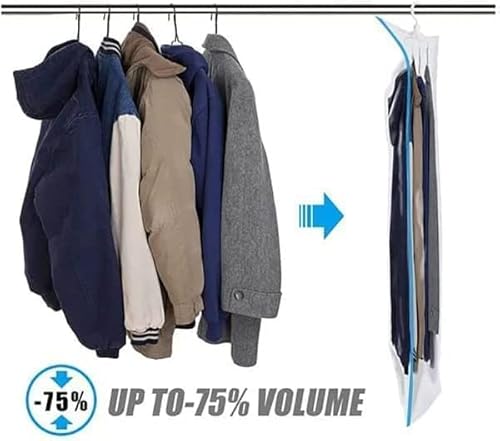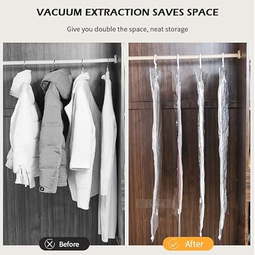 Hanging Compressible Storage Bag: Free Up 75% Space, The special 4-ring design can easily accommodate up to 4 suits Jacket, Maximize your space and keep your house organized. Hanging space-saving bags are perfect for storing large, bulky, or outdated clothes in the closet.