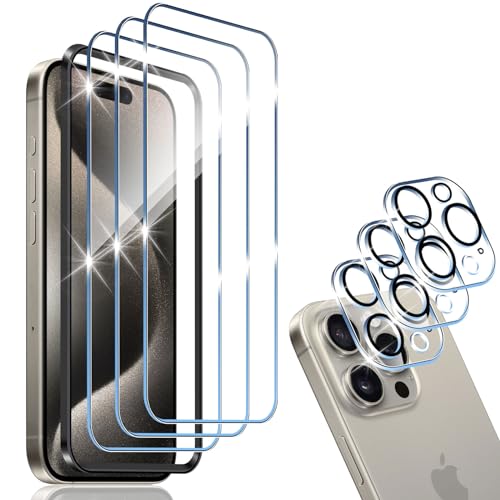 HidWee Pellicola Protettiva Compatibile con iPhone 15 Pro, 3 Pezzi Vetro Temperato + 3 Vetro Protezione Fotocamera Con Strumenti di Installazione, 9H Durezza Anti-Graffio Screen Protector