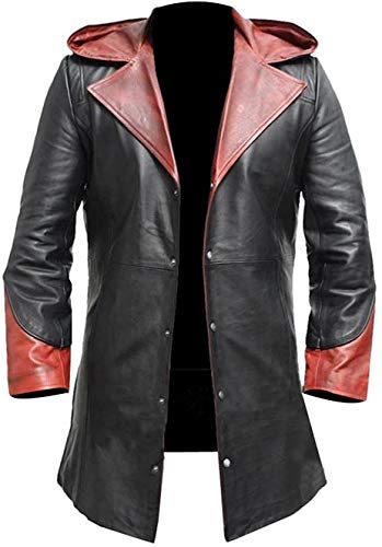 HiFacon Cappotto da uomo con cappuccio in pelle nera di Dante DMC Dante del Devil May Cry V Coat, Rosso e nero, XS
