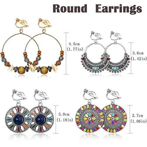 HIFOT 9 Paia Boemia Set Orecchini Clip Donna Argento, Ragazza Orecchini Senza Buco Pendenti Oro, Orecchini a Clip Lunghi Legno Anallergici
