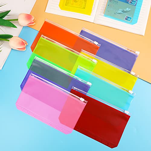 Colori: 8 colori di queste tasche con cerniera a fogli mobili a 6 fori formato A6, tra cui rosa, blu, arancione, verde, giallo, blu navy, rosso e viola, 2 pezzi per ogni colore. Puoi distinguere e trovare rapidamente gli articoli in base al colore.