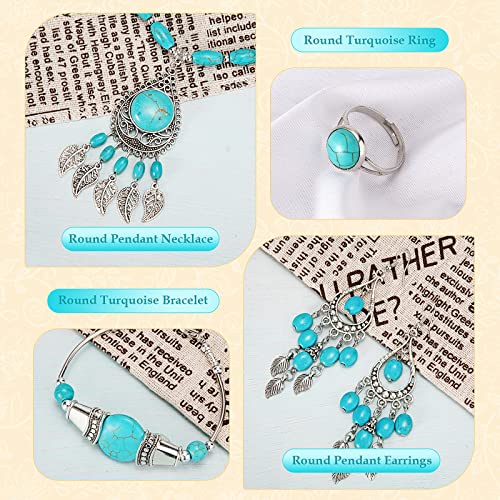 Design Boho: Parure gioielli donna turchesi da 4 pezzi è un design retrò casual, le strisce di turchese sono casuali. Orecchini pendenti turchesi, collane turchesi, bracciali turchesi rotondi e anelli turchesi hanno un aspetto sofisticato e unico che ti farà sembrare più elegante. Il turchese è un simbolo di salute, felicità e fortuna.