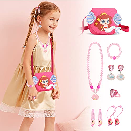 Hifot Sirena Gioielli per Bambini Borsetta, Mermaid Mollette Capelli Bracciale Anello Collana Braccialetto Orecchini per Ragazze Vestire Set