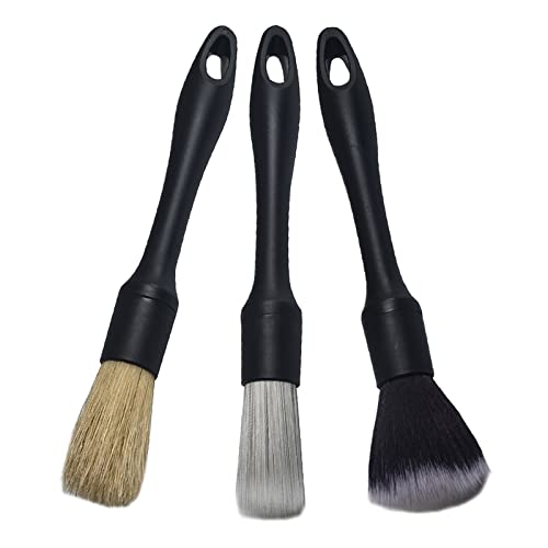 【Pacchetto】3 diversi tipi di spazzole per dettagli auto, microfibra, fibra sintetica, pelo naturale di cinghiale. Spazzola per interni auto Realizzata con materiali di alta qualità, molto morbido e flessibile e resistente.