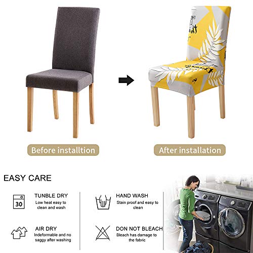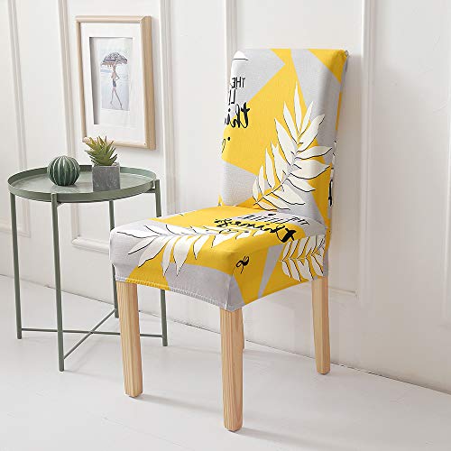 HIFUAR Coprisedie con Schienale Elasticizzato 4 Pezzi,Fodere Coprisedia per Sala da Pranzo Lavabile Romovibile Estraibile Universale per Casa Cucina Ristorante(Giallo Grigio/Foglie,4 Pezzi)