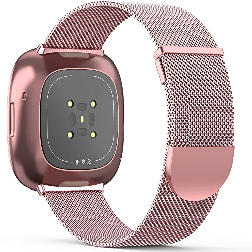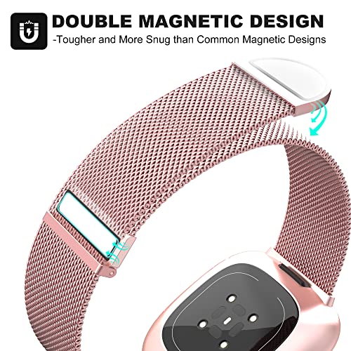 Higgs Cinturini Compatibile con Cinturino Fitbit Versa 3/Fitbit Sense/Sense 2 per Donna e Uomo, Cinturino Magnetiche Regolabili Doppie per Versa 3/Sense 2/Sense, Liscio Maglia Milanese Rosa