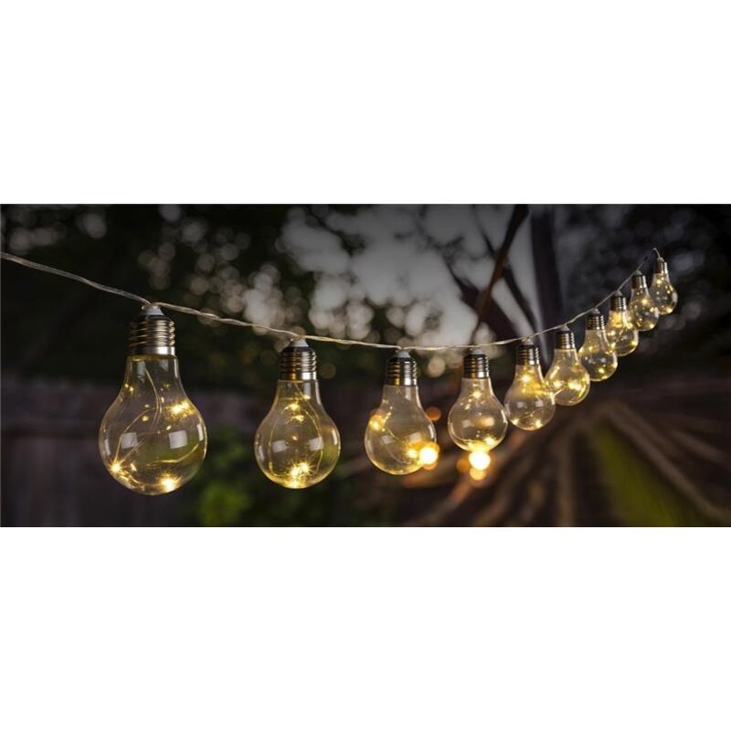 Catena luminosa ad energia solare con 10 lampadine a luce calda. Questa catena non necessita di cablaggio ed è di facile istallazione: indicata per il tuo giardino è un ottima soluzione a basso consumo energetico per illuminare verande. terazze o qualsiasi altro ambiente esterno. High-Tech catena Luminosa Ad energia solare A luce calda Con 10 lampadine Lunghezza: 2 mt