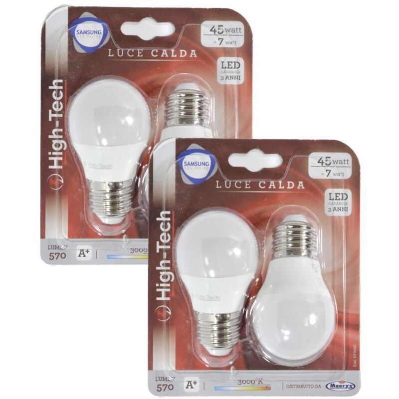 Set 2 LAMPADINE Tecnonologia Samsung Classe A+. Risparmio Energetico Attacco E27 Potenza 7W=45W Intensità di Luce 570 Lumen Luce Calda 3000K Classe A+ Durata Stimata 25000 Ore SAMSUNG LED CHIP INSIDE