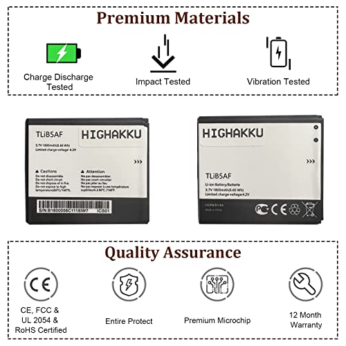 Highakku Batteria di ricambio Tlib5Af compatibile con Alcatel One Touch 5035D, T-997, Smart Ot-5035, X'Pop, C5, 5036D, Tcl S800, Cab32E002C. 1, cabina 3. 2E. 0000C2