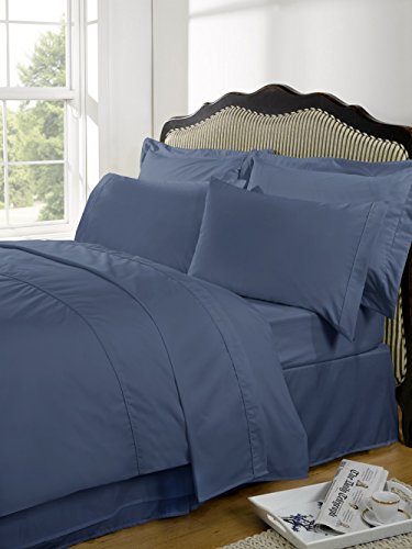 Highams Luxurious Plain Dye copripiumino matrimoniale, in cotone egiziano, colore: blu acciaio