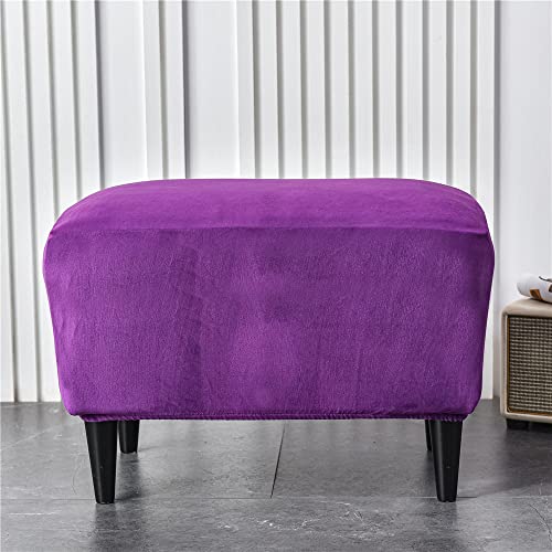 Highdi Copri Pouf Rettangolare Elasticizzato, Tinta unita Velluto Copertura Dell'Ottomano Copri Poggiapiedi Poltrona per Soggiorno, Rimovibile Lavabile Fodere per Sgabello (Viola scuro)