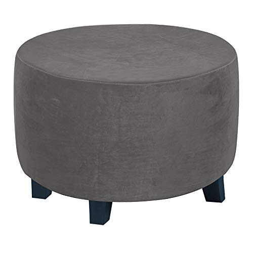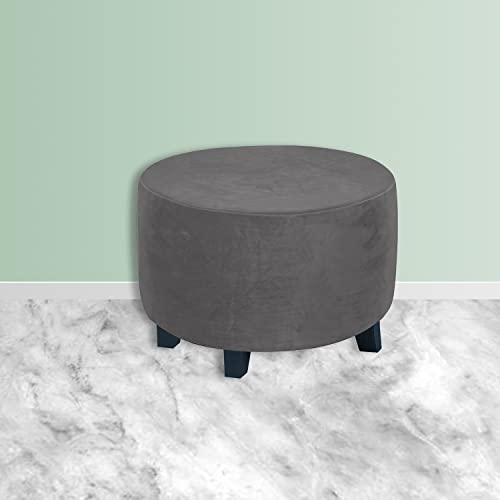 Highdi Copri Pouf Rotondo Elasticizzato, Spandex Velluto Lusso Copertura Dell'Ottomano Copri Poggiapiedi Poltrona per Soggiorno, Morbido Rimovibile Lavabile Fodere per Sgabello (Grigio scuro,L)