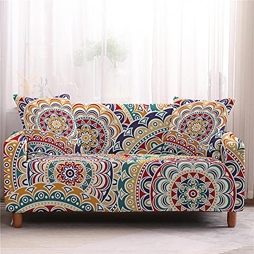 Highdi 3D Copridivano di Mandala Stampa, Copridivano Elasticizzato 1/2/3/4 Posti, Universale Fodere Copridivani, Copridivani con Braccioli, Antiscivolo Sofa Protettore (Zingaro,2 posti)