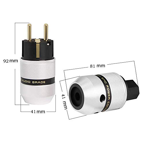 ⑤ Contenuto della confezione: 1 spina Schuko + 1 spina IEC 320 per apparecchi a freddo, ottone con placcatura in oro, alloggiamento in alluminio.