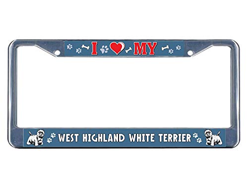 West Highland White Terrier Dog I heart Metal License Plate Frame Tag Border