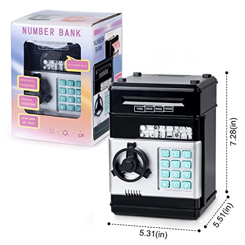 Highttoy Salvadanaio Elettronico di Risparmio, Cassaforte con Codice per Bambini 3-12 Anni con Combinazione, Bancomat per Ragazzi Nero