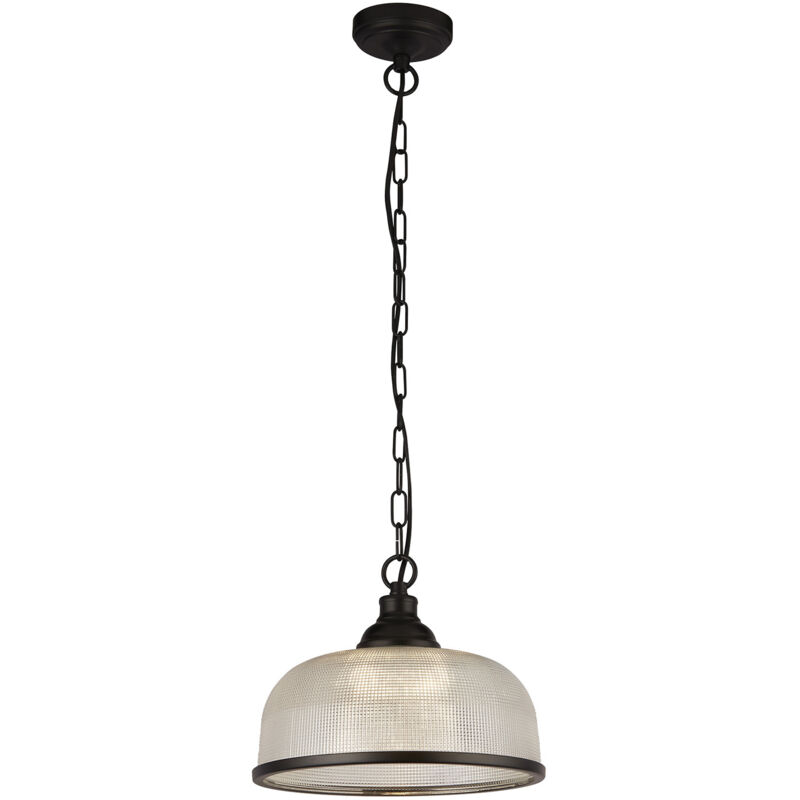 Collezione Highworth SCANALATURE PRISMATICHE La sospensione Highworth è un apparecchio di illuminazione accattivante, ideale per qualsiasi cucina, sala da pranzo o soggiorno. Presenta un'elegante combinazione di acciaio dolce e vetro in stile olofano in una straordinaria combinazione di colori nero opaco e trasparente. Il suo stile versatile si integra perfettamente sia negli spazi moderni che in quelli tradizionali, mentre il suo design regolabile in altezza consente un'illuminazione personalizzata. Il paralume vanta un classico rivestimento nero, mentre il paralume in vetro trasparente con un design a coste in stile olofano aggiunge un tocco di eleganza.