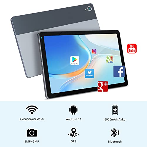 HiGrace Android 11 Tablet, 10.4 Pollici Tablet con 6G Wi-Fi 3Go RAM 32Go ROM Quad-Core 6000mAh Bluetooth GPS - Grigio