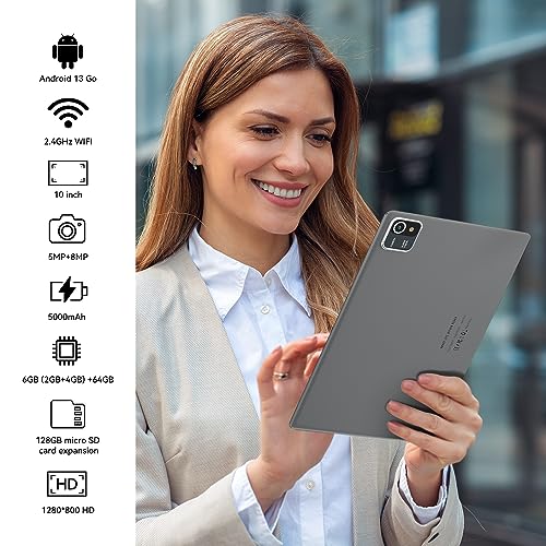 HiGrace Tablet 10 Pollici, 6GB RAM +64GB ROM Android 13 Quad core Tablet PC, 5000mAh, 5MP+8MP, 1280 * 800 IPS, Tablet in Offerta con Wifi, Bluetooth, Type-c (Grigio)