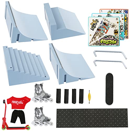 HIHOBDAY Kit di 4 rampe per skateboard, kit da allenamento con dita, skateboard e scooter (blu)