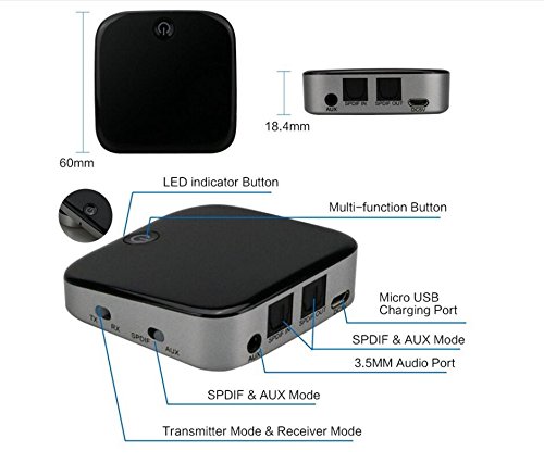 Potente combinazione 2-in-1: trasmettitore bluetooth 4.1 per lo streaming audio dal dispositivo non Bluetooth per il tuo Auricolare Bluetooth o altoparlanti? Bluetooth e ricevitore per rendere normale in-link cuffie o altoparlanti in enable-bluetooth.