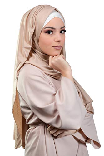 Hijab maxi jersey elastico scialle donna musulmana velata hijab islamico 200 X 80 CM HJ000, beige, Taglia unica