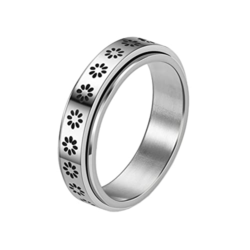 HIJONES Anello Girevole a Forma di Fiore da Donna in Acciaio Inossidabile Cinturino in Argento per Ragazze Ansiose Regalo Antistress Taglia 22