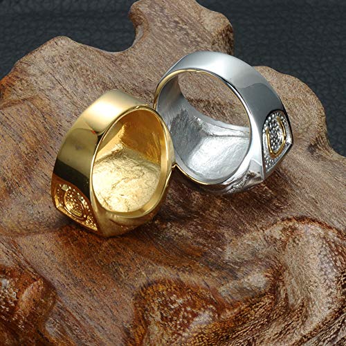 HIJONES Gotico Punk Animale Testa di Cavallo Anello da Uomo in Acciaio Inossidabile con Zircone Cubico Incrostato Oro Taglia 22