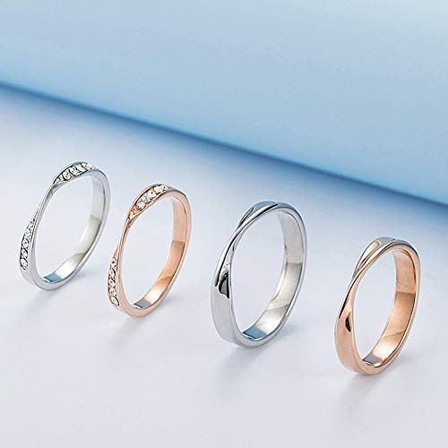HIJONES 4MM Ritorto Sottile Anello di Mobius da Unisex in Acciaio Inossidabile senza Zirconi Promessa di Fedi Nuziali Argento Taglia 22