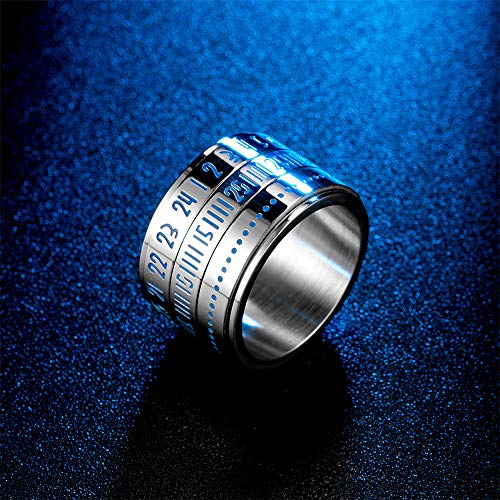 HIJONES Squillare Numeri Arabi Blu Nottilucenti Rotanti Uomini Acciaio Inossidabile Argento Taglia 14