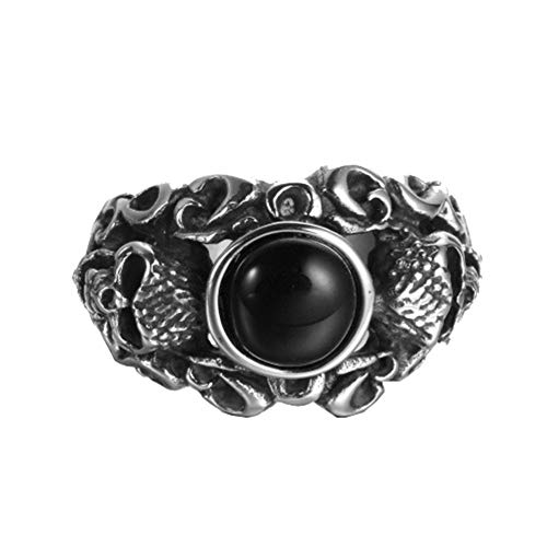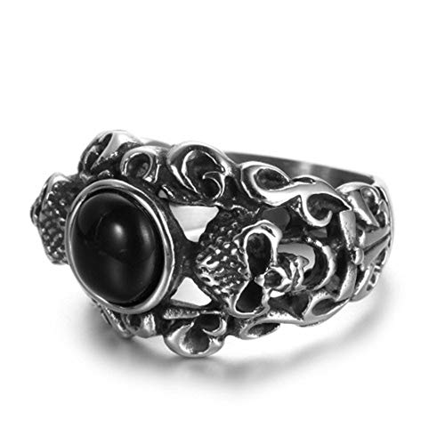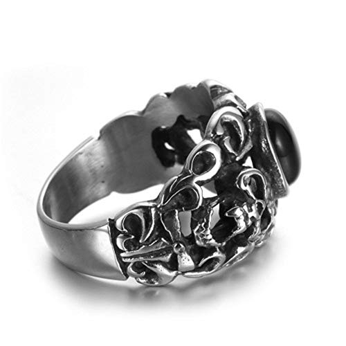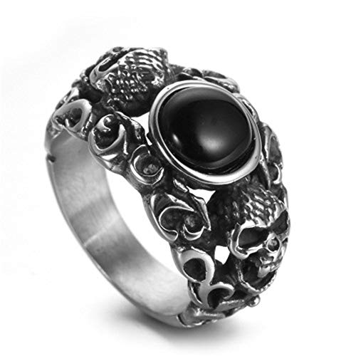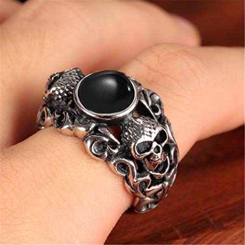 HIJONES Squillare Teschio Occhio di Tigre Pietra Preziosa Nera Argento Gotico Nero Uomini Acciaio Inossidabile Taglia 19