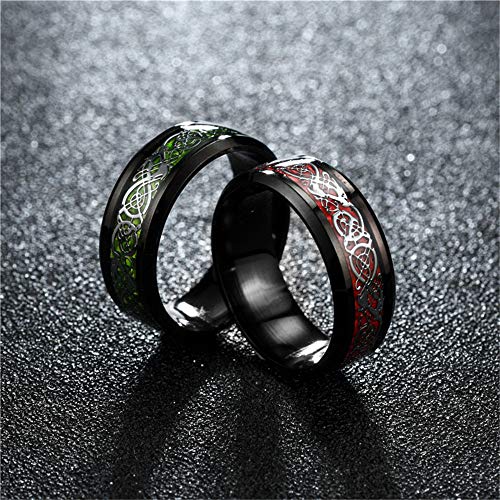 HIJONES Squillare Verde Argento Drago Celtico in 8mm Matrimonio in Uomo Nero Acciaio Inossidabile Taglia 12