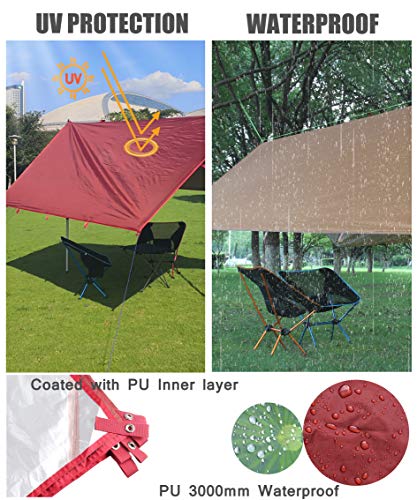 Portatile e leggero: dimensioni: 3 m x 3,2 m, pesa solo 0,9 kg, questo telo può essere facilmente piegato in una custodia in modo da poterlo portare ovunque tu vada. Il nostro telo da campeggio è abbastanza grande da coprire una tenda, una doppia amaca o una cucina all'aperto