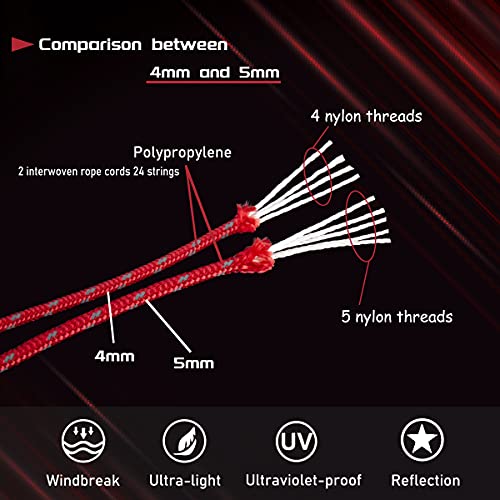 Hikeman Corda da campeggio resistente, confezione da 6 pezzi da 5 mm per esterni riflettenti con tenditore, corda in nylon resistente, per grandi tende, grandi teloni (rosso)