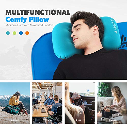 HIKENTURE Cuscino da Campeggio Cuscino da Viaggio Leggero - Comodo Cuscino Portatile e Compatto da Esterno per Campeggio, Backpacking, Escursionismo - in Aereo, Auto, Spiaggia, Ufficio (Blu)