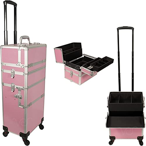 Hiker HK6501 4-Wheel 2-in-1 Rolling Makeup Case with Easy-Slide e allungabile, Include Rimovibile Vaschetta e Coperchio Extra, 78,7 cm, Zebra Texture Pink Smooth