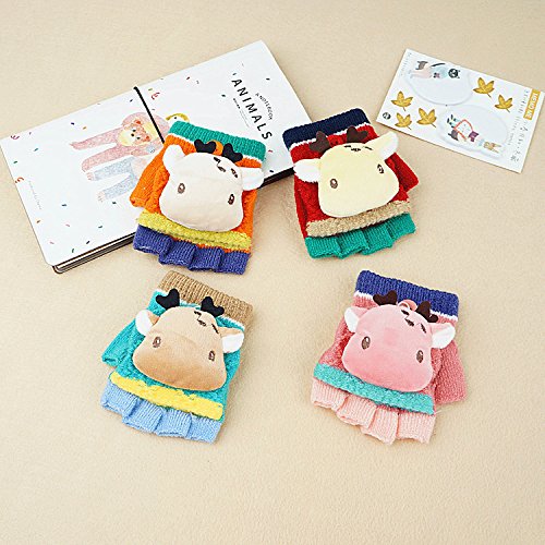 Hikfly Guanti Manopole Magici Maglieria a Maglia Mezzo Copricapo per il Bambino Ragazze Ragazzi bambini piccoli guanti caldo dittatore regalo (1-3 anni) (Cervo, Rosso)