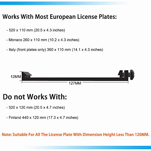 ➤ Adatto per targhe standard in plastica/alluminio/3D con altezza 110 mm ~ 119 mm