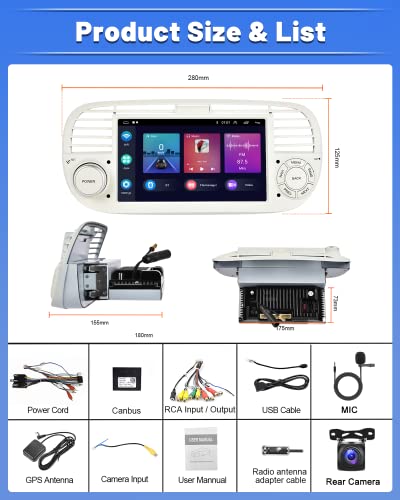 【La Radio Fiat 500 supporta GPS e WiFi】 Collegati a un hotspot Wi-Fi o cellulare, goditi la navigazione sul Web o scarica YouTube, Spotify, Tik Tok e altre app dallo store. La radio Bluetooth supporta l'uso della navigazione mappa online o offline, quindi non devi preoccuparti di perderti di nuovo.