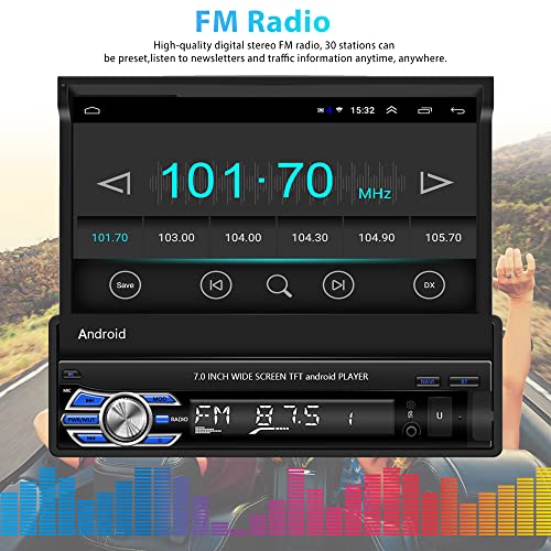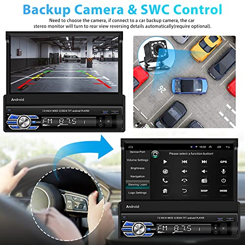 Hikity Android 1 Din Autoradio con Navi 7 Pollici Motorizzato Schermo, Radio Auto Bluetooth con WiFi/FM/SWC/Retrocamera/Vivavoce Bluetooth, Mirror Link per Android/iOS