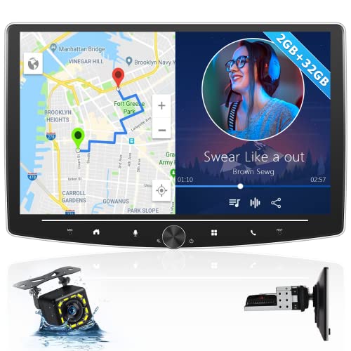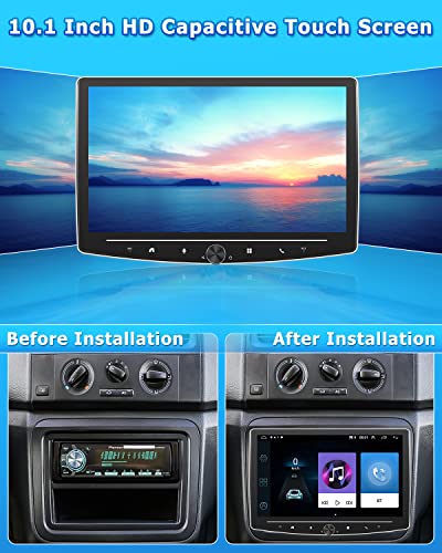 Autoradio Android a 1 din con schermo: Questa autoradio a 1 din è dotata di un touch screen regolabile da 10" che supporta 20 gradi di regolazione da davanti a dietro, da sinistra a destra e verso l'alto per offrire sempre la migliore visione. Supporta la riproduzione di video a 1080P con un pulsante a spirale al centro del pannello. Sistema operativo Android di ultima generazione e dotato di 2 GB di RAM e 32 GB di ROM.