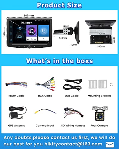 2+32G - Hikity Android 11 Autoradio 1 Din con Schermo Rimovibile da 10 Pollici Stereo Auto Bluetooth con Navi WiFi EQ FM RDS USB SWC Telecamera di Retromarcia + 16 Pin Adattatore ISO