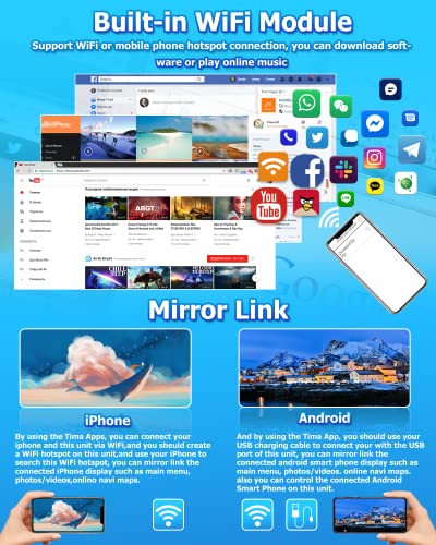Mirror Link per Android/iOS: l'autoradio Bluetooth supporta il mirror link iOS/Android. L'iPhone si collega tramite WiFi e i telefoni Android tramite WiFi/cavo USB originale. È possibile sincronizzare facilmente lo schermo del telefono con il touch screen da 10 pollici dell'autoradio. Non compatibile con i telefoni Samsung e Huawei
