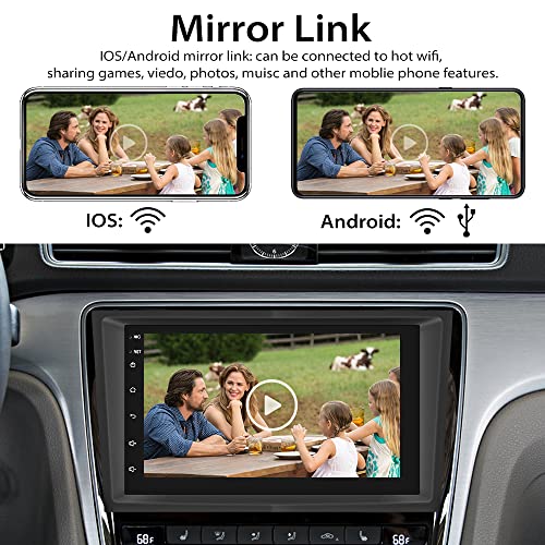 Mirror Link & Bluetooth: Collegamento tramite cavo USB originale, funzione Mirror Link per iphone (ios 15 sotto) /Android 4.0-10.0 telefoni per sincronizzare lo schermo mobile allo schermo dell'stereo auto. L'autoradio 2 din incorporata BT Link upports chiama in vivavoce, scarica la rubrica e riproduce la musica.