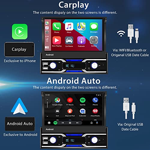 Hikity Autoradio 1 Din Android con CarPlay Wireless DAB RDS Radio Auto Touchscreen con GPS Navi 7 Pollici Display Retrattile Stereo Auto Bluetooth con FM USB SWC WiFi Mirror Link Retrocamera DAB+