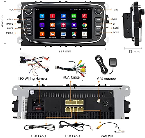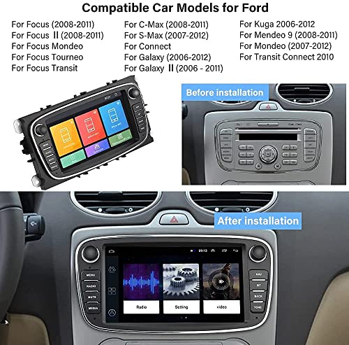 Hikity Autoradio Android 2 DIN per Ford Focus GPS Navigatore Stereo Auto 7 pollici Android Auto Radio Macchina con Schermo WiFi Bluetooth FM Dual USB per Ford Mondeo C-MAX S-MAX Galaxy II