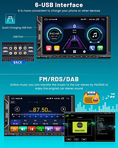 Hikity 7'' DAB+ Autoradio 2 Din Android 11 Touchscreen Radio con Navi Carplay Android Auto Doppio Din Auto Stereo Bluetooth con 6 USB Port WiFi FM RDS Mirror Link SWC+Telecamera+Microfono