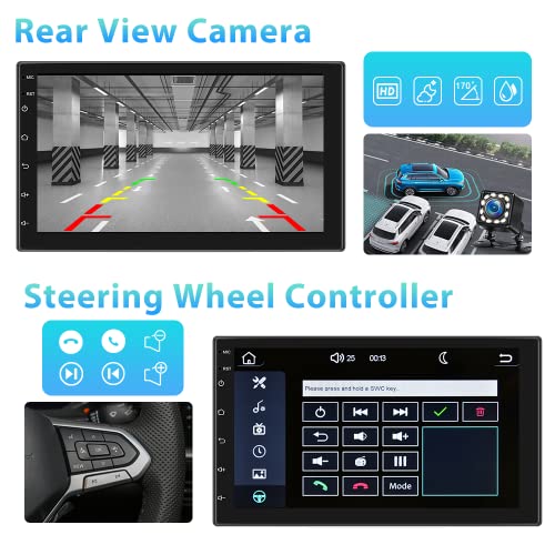 Hikity Autoradio Apple Carplay 2 Din con Android Auto Stereo Auto con Schermo Tocco da 7 Pollici con FM USB SWC Mirror Link per Android/iOS Smartphone + Retrocamera + Microfono